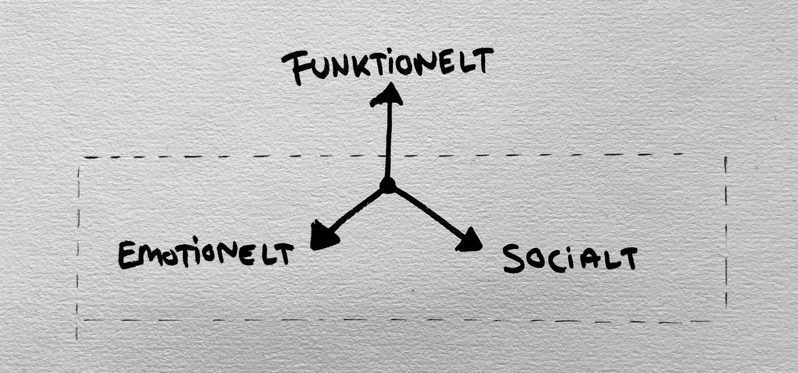 - Sørg for, at diagrammet udfyldes på alle tre akser. De sociale og emotionelle behov er sommetider sværere at få frem, men mindst lige så vigtige, idet det som oftest er her, købsbeslutningen virkelig tages.